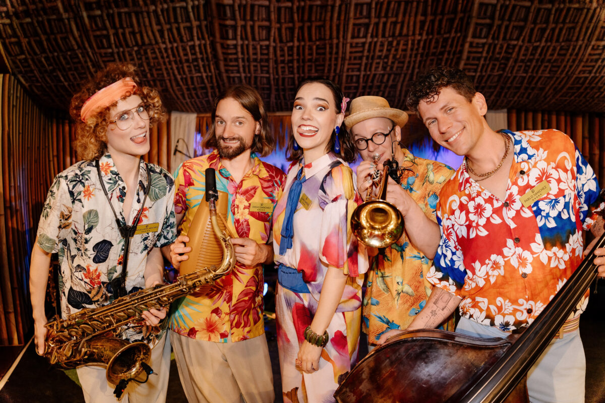 Mit Stimme und Banjo, mit Mandoline und Kontrabass, mit Sousaphone und Schlagzeug, mit Samples und Saxophonen erwacht der Schauplatz zum Leben. Mit ihren zahlreichen Instrumenten erschaffen die Musiker eine bildgewaltige Klangwelt, die das Urlaubsfeeling lebendig werden lässt. Gekonnt elegant bewegt sich die Liveband zwischen unterschiedlichsten Musikstilen.